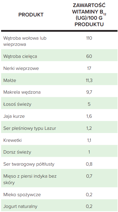 Tabela 1. Źródła witaminy B12 w diecie